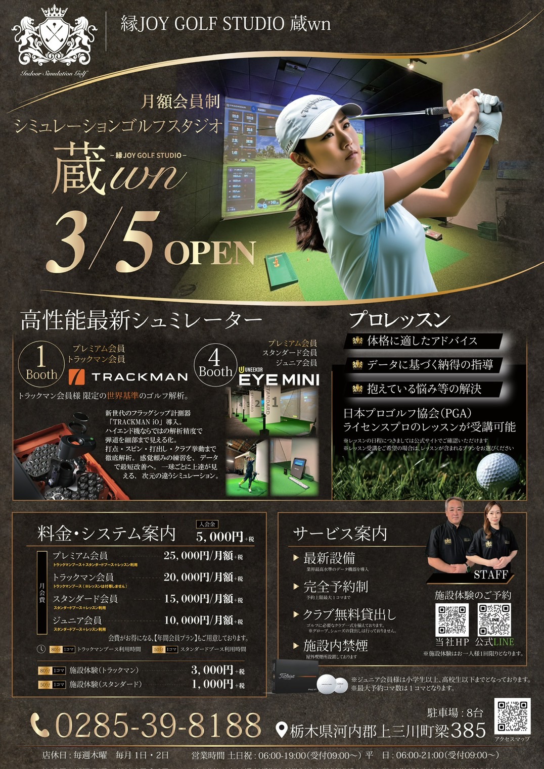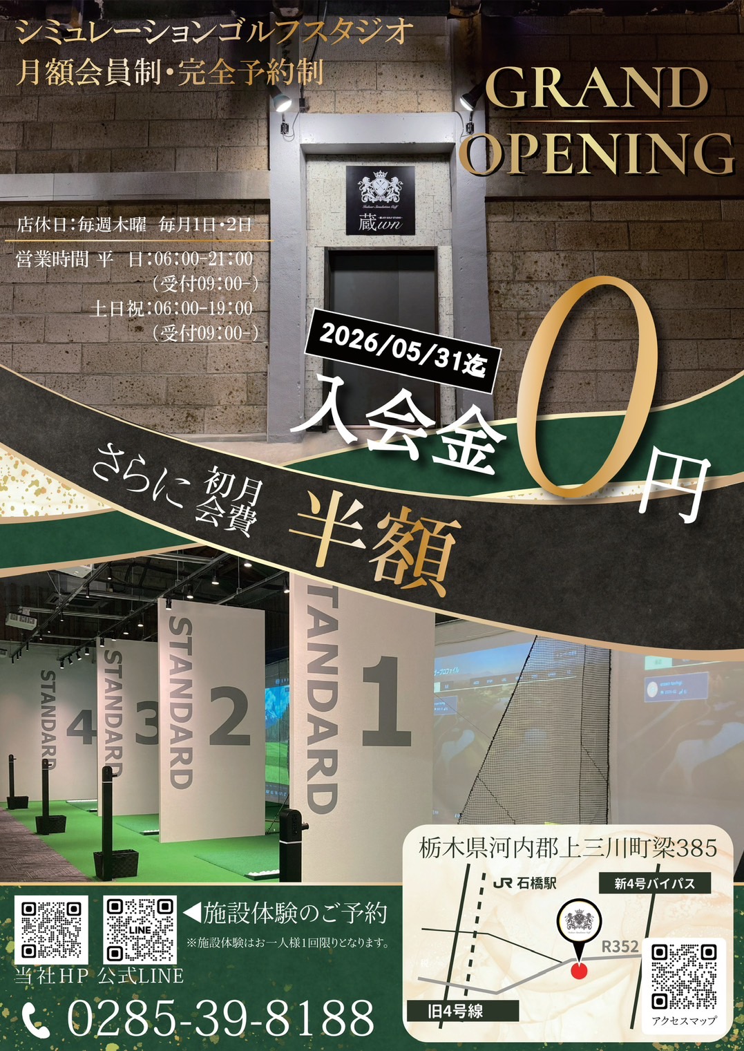 栃木県上三川町梁385に、本格志向のシミュレーションゴルフスタジオ「蔵wn」が